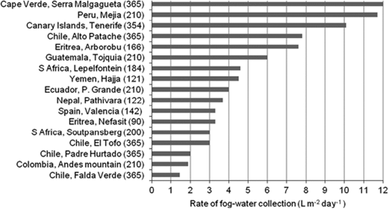Figure 2: Fog water collection rates and frequency by region.