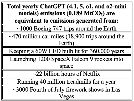 Total ChatGPT AI emissions/year = 0.189 MtCO₂
