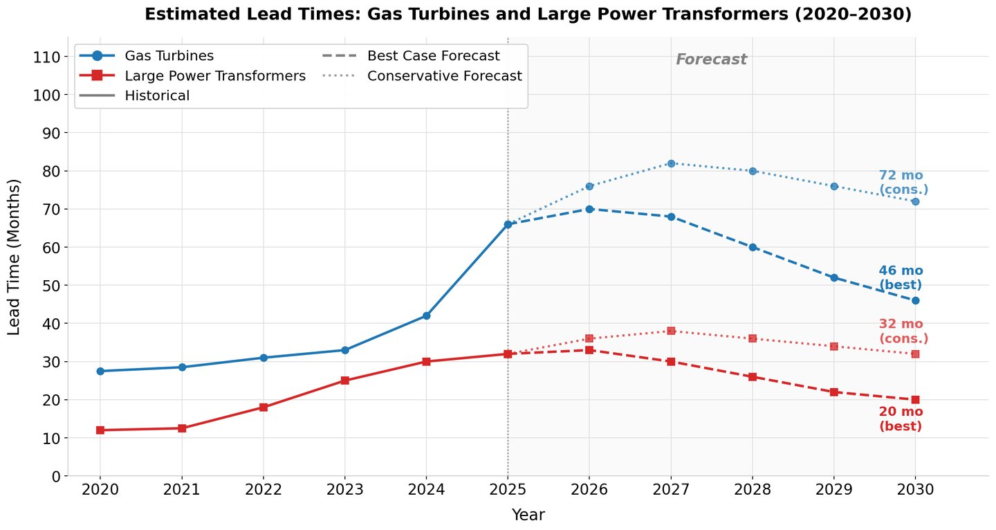 In a global survey of data center experts conducted by Turner and Townsend in 2025, 48% of the participants cited “Power” as the top schedule risk. The US interconnection timelines have doubled to 4.5 years from the 2010 levels, partly due to the delayed procurement timelines of “Transformers” needed for grid upgrades. Wood Mackenzie estimates that power transformers and distribution transformers are currently facing a supply deficit of 30% and 6%, respectively, sending the unit prices soaring by 77% compared to 2019 levels. To circumvent this power availability risk, developers are investing in on-site power generation infrastructure, most popularly the natural gas generators, owing to their reliability and shorter build times. IEA estimates that energy developers are planning to build 26 GW of new gas-fired power capacity by 2028, about twice the amount that was planned for 2023-2026. While this opportunity is lucrative for the fast-paced data center industry, gas “Turbine” bottlenecks are a major roadblock. This is partly due to the sheer demand outpacing production capacity, and the gas turbine market being supplied by only 3 major OEMs, who are finding it difficult to ramp up production. Utility-scale gas turbines are being quoted at 48-84 months for new builds, exposing developers to schedule risks. Another major issue surrounds “Talent.” I came across some concerning metrics related to the skilled labor shortage at a Data Center conference I attended last year. The industry needs around 300k-400k skilled construction workers in the next 5 years to meet the growing demand, and the workforce pools are just not enough to fulfill this demand. A study conducted by the Uptime Institute cites that 58% of data center operators struggle to find qualified candidates. Bloomberg also reports that engineering roles that involve advanced physics and complex engineering, such as advanced energy technologies and electrical systems, are facing a shortage, and this gap is estimated to grow to 200k engineering roles by 2030. In this article on bottlenecks in the data center industry, we will explore the dynamics, economics, and the reality of the 3 Ts: Transformers, Turbines, and Talent, and discuss realistic solutions to address/circumvent these bottlenecks.