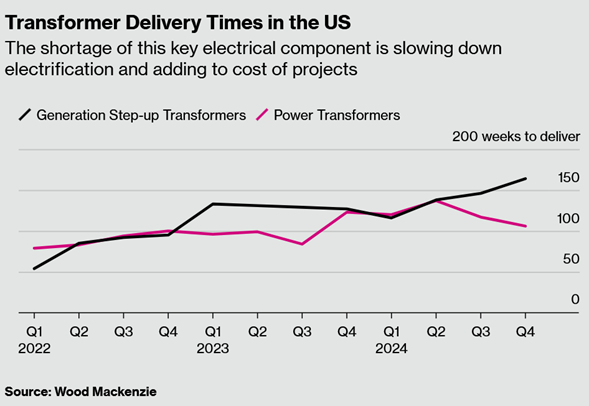 Similar to the transformer industry, the turbine industry has fallen prey to past boom and bust episodes, forcing companies to follow a cautious approach. While manufacturers have been investing in expanding production, like GE Vernova investing $300 M to build plants in South Carolina and New York, and Mitsubishi Heavy Industries boosting production capacity by 30%, the demand is steeply outpacing supply.